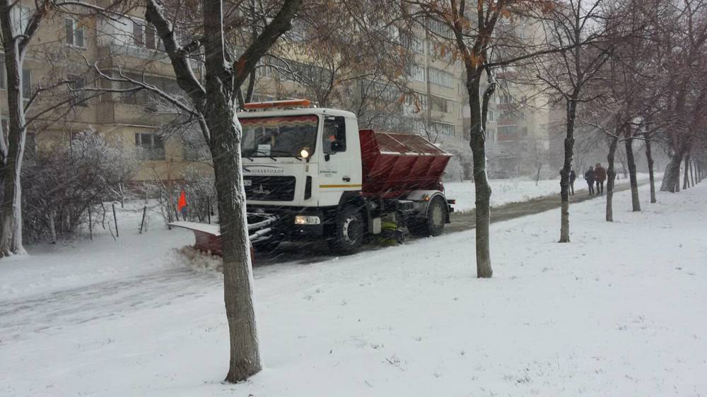 Техника коммунальной корпорации "Киевавтодор" расчищает снег на основных магистралях столицы, тротуарах, жилищно-коммунальных участков (ЖЭКи) и межквартальных проездах, работает также техника КО "Киевзеленстрой".