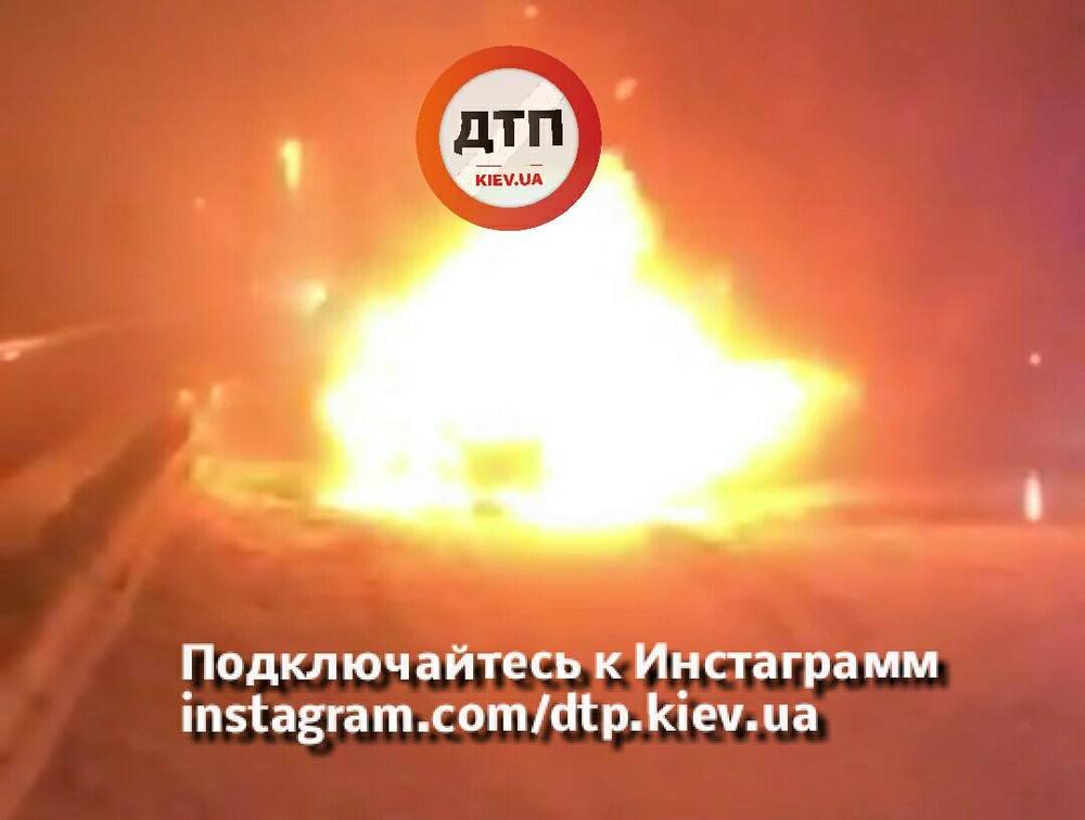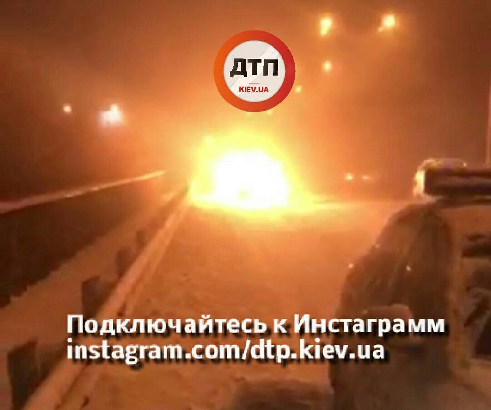 Пожарные не доехали из-за пробок. В Киеве на Южном мосту как факел сгорел автомобиль