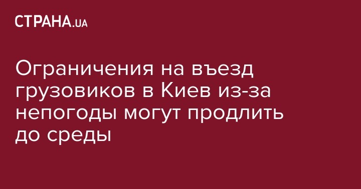 В понедельник, 18 декабря с 06:00 до 13:00 был ограничен въезд в Киев крупногабаритного транспорта. В КГГА сообщили, что это ограничение будет действовать 18 декабря с 17:00 ориентировочно до 22:00, и с 06:00 19 декабря, в случае неблагоприятных погодных условий.