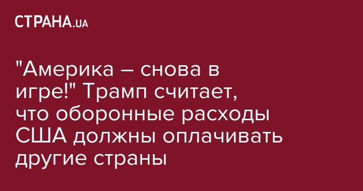 "Америка – снова в игре!" Трамп считает, что оборонные расходы США должны оплачивать другие страны