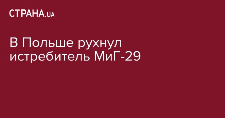 Вчера, 18 декабря, в Польше произошел инцидент с военным самолетом. Истребитель МиГ-29 при заходе на посадку на аэродром в Минске-Мазовецком потерял управление и рухнул на землю. Об этом сообщает министерство обороны Польши.