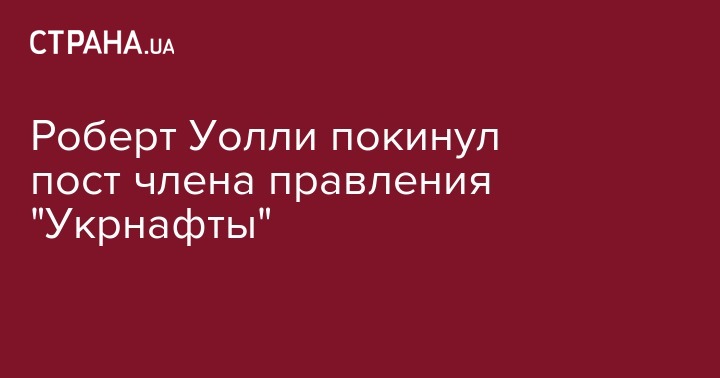 Роберт Уолли покинул пост члена правления "Укрнафты"