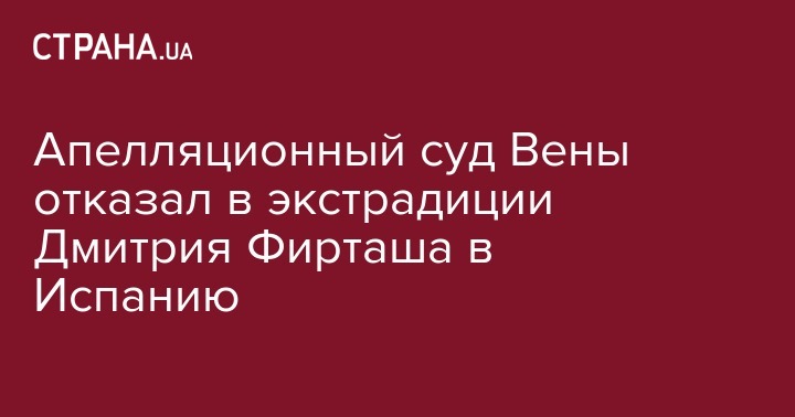 Апелляционный суд Вены отказал в экстрадиции Дмитрия Фирташа в Испанию, сообщает источник "Страны" близкий к судебном процессу.