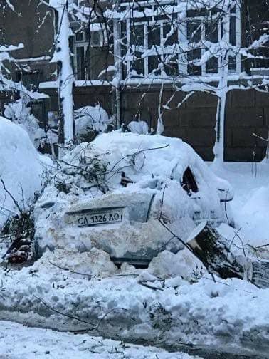 Киев второй день обильно засыпает снегом, а под весом осадков массово падают деревья. Об этом сообщает ГосЧС столицы.