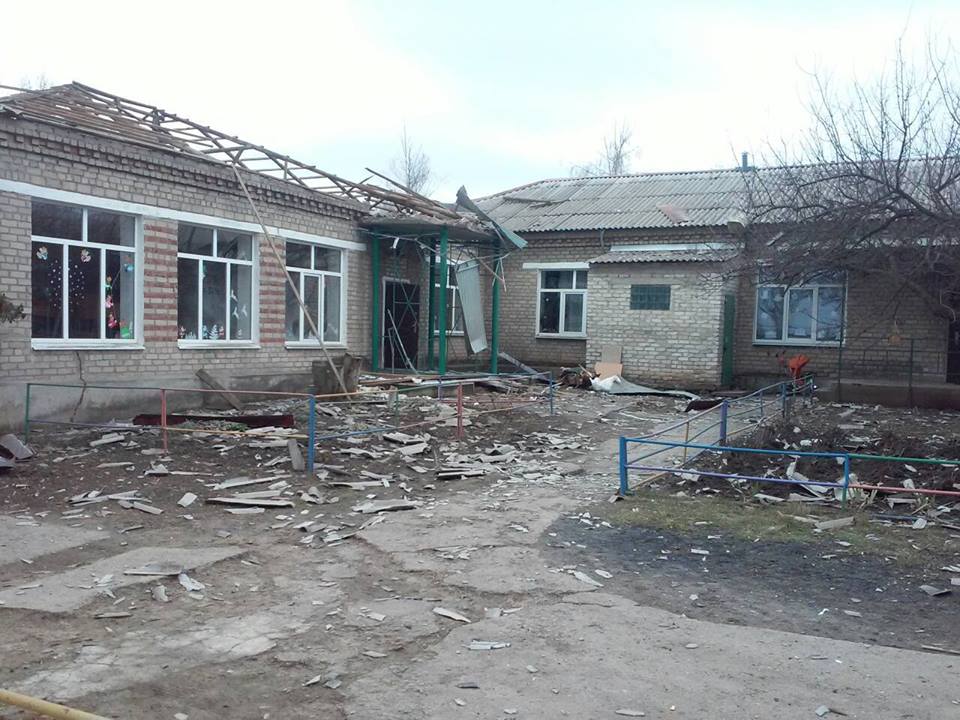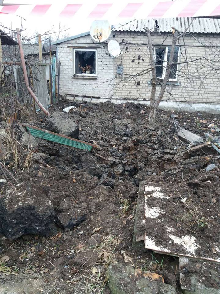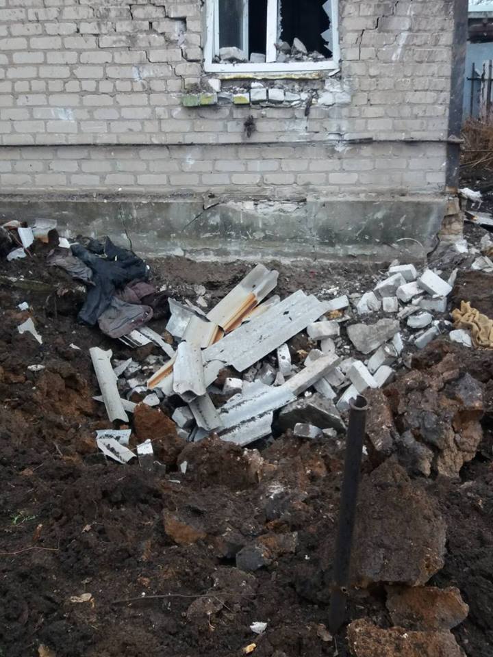 В штабе АТО опубликовали фото последствий обстрела поселка Новолуганское под Светлодарском из "Града". Кадры появились на странице штаба в Facebook.
