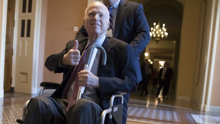 Напомним, политик страдает от глиобластомы - наиболее распространенной и агрессивной формы опухоли мозга. В июле 81-летний Джон Маккейн перенес операцию по удалению опухоли на головном мозге, которая позже была признана формой глиобластомы. Ранее сенатор заявлял, что надеется победить болезнь.