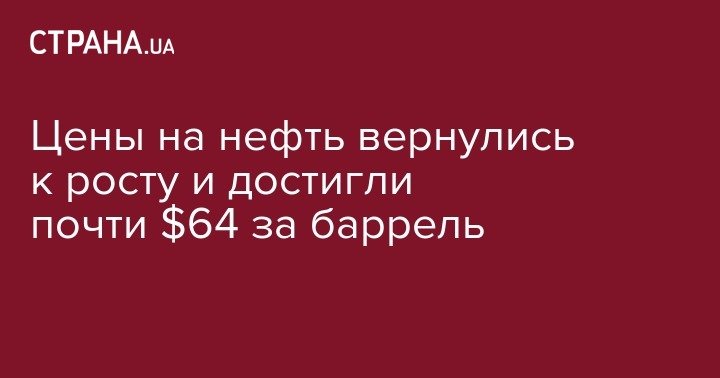 Цены на нефть вернулись к росту и достигли почти $64 за баррель