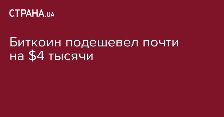Биткоин подешевел почти на $4 тысячи