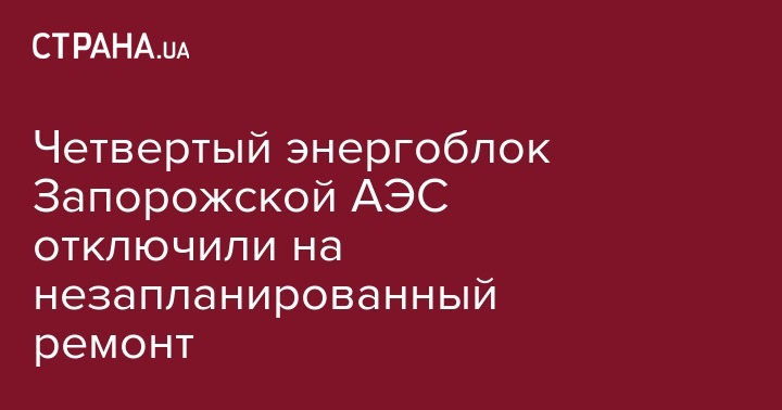 Четвертый энергоблок Запорожской АЭС отключили на незапланированный ремонт