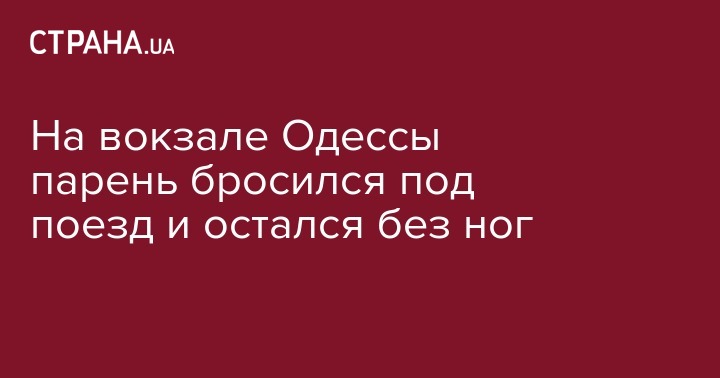 "Сегодня на станции Одесса-Главная 23-летний житель Ивано-Франковской области бросился под электропоезд № 6251 Вапнярка — Одесса, что после высадки пассажиров на вокзале следовал в депо. В результате инцидента мужчине были ампутированы оба голеностопных сустава. На месте происшествия сотрудники медпункта железнодорожного вокзала оказали пострадавшему первую медицинскую помощь, сейчас он госпитализирован в больницу", — говорится в сообщении.