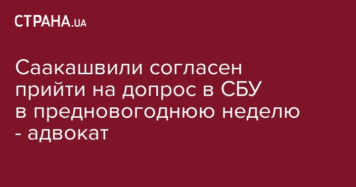 Экс-президент Грузии и лидер украинского "Руха новых сил" Михаил Саакашвили готов прийти на допрос в СБУ в начале следующей недели (25-31 декабря).
