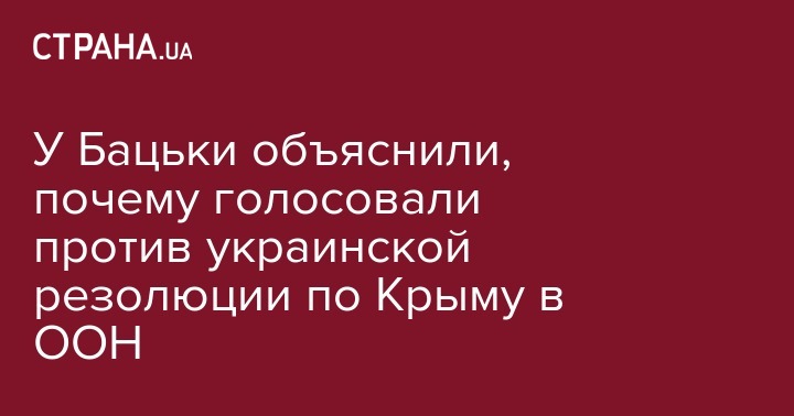 У Бацьки объяснили, почему голосовали против украинской резолюции по Крыму в ООН