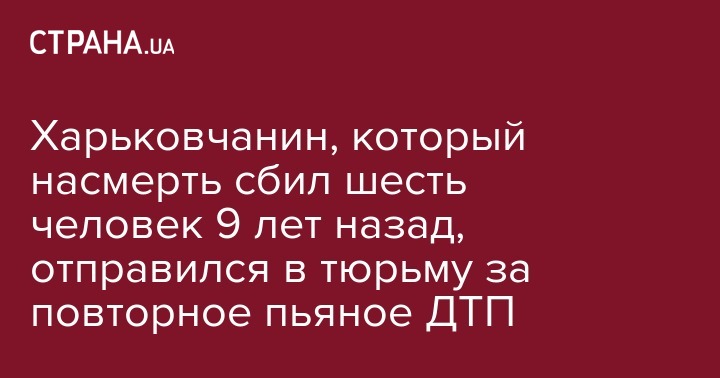 Водитель, который насмерть сбил шестерых человек в 2008 году, совершил повторное пьяное ДТП и был приговорен к 2 годам и 9 месяцам тюрьмы. Также ему запретили водить в течение 3 лет. Такое решение приняли в Червонозаводском районном суде Харькова.
