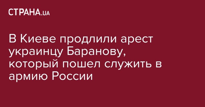 В Подольском райсуде Киева продлили бывшему военнослужащему Вооруженных сил Украины Александру Баранову до 6 марта. Она подозревается в госизмене за переход на службу в армию РФ.