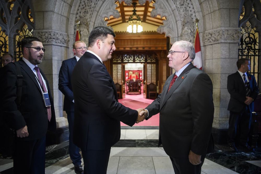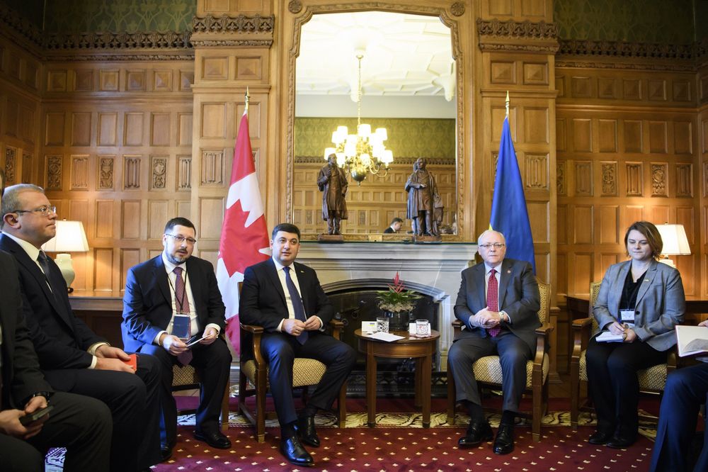 Встреча Гройсмана со спикером Сената Парламента Канады Джорджем Фюри. Фото: Кабмин