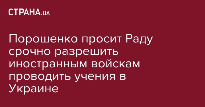 Законопроект о допуске подразделений вооруженных сил других государств на территорию Украины в 2018 году для участия в многонациональных учениях определен Порошенко как неотложный.