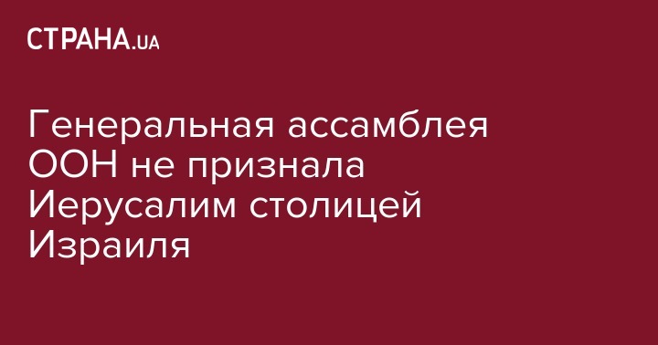 Генеральная Ассамблея ООН приняла резолюцию о непризнании решения США по статусу Иерусалима в качестве столицы Израиля, за документ проголосовали 128 стран, против выступили девять, еще 35 воздержались, передает РИА Новости.