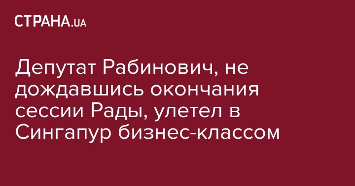 Депутат Рабинович, не дождавшись окончания сессии Рады, улетел в Сингапур бизнес-классом