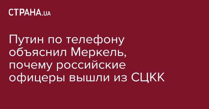 Президент России Владимир Путин разъяснил канцлеру ФРГ Ангеле Меркель причины вывода российских офицеров из состава Совместного центра контроля и координации прекращения огня и стабилизации линии соприкосновения сторон (СЦКК) на Донбассе.