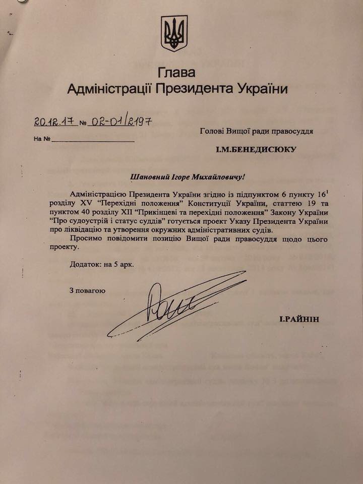 На днях Порошенко на основании этого документа подпишет Указ о ликвидации и создании других судов, чтобы отомстить Печерскому, апелляционному и окружному Киева за отказ помогать по Саакашвили. Ему кажется, что он будет контролировать новые.