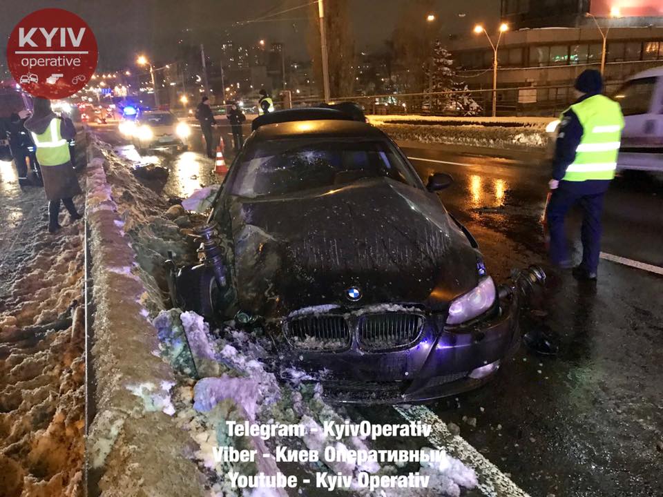 По предварительным данным, водитель автомобиля BMW, двигаясь в направлении Голосеевский проспекта от станции метро Дружбы Народов, не справился с управлением и на большой скорости врезался в отбойник, передает Киев Оперативный.