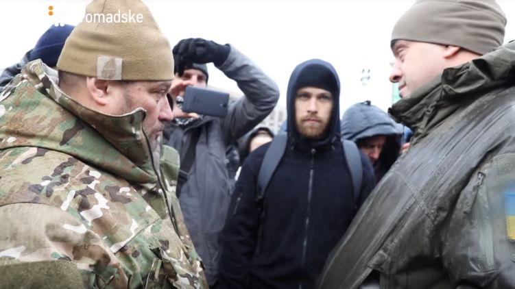 Появилось видео стычки "азовцев" с советником президента Бирюковым на Майдане