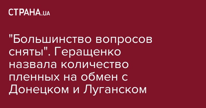 "Большинство вопросов сняты". Геращенко назвала количество пленных на обмен с Донецком и Луганском