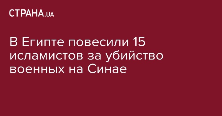 В Египте повесили 15 человек, осужденных за убийство силовиков на Синайском полуострове, сообщает Reuters.