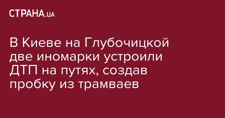 В Киеве на Глубочицкой две иномарки устроили ДТП на путях, создав пробку из трамваев