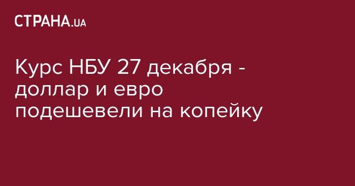 В среду, 27 декабря, Нацбанк установил курс гривны по отношению к иностранным валютам. По сравнению с 26 декабря доллар и евро незначительно подешевели. Об этом сообщает сайт НБУ.