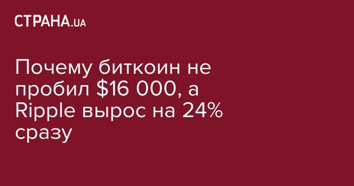 Почему биткоин не пробил $16 000, а Ripple вырос на 24% сразу