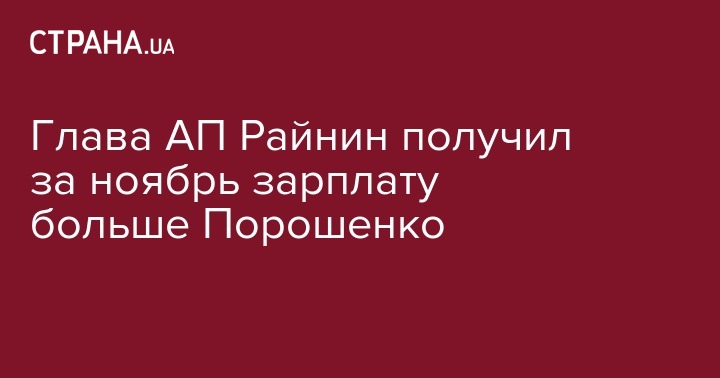 Сумма общей начисленной заработной платы за ноябрь 2017 года главы Администрации Президента Украины Райнина И. Л. составляет 58 253,19 гривен",   - говорится в ответе Государственного управления делами на запрос Украинских Новостей.
