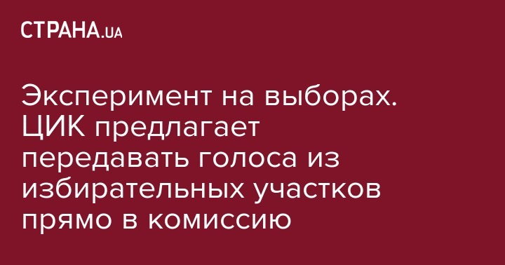 Центроизбирком Украины предлагает провести государственный эксперимент по передаче сведений о подсчете голосов избирателей с избирательных участков непосредственно в комиссию.