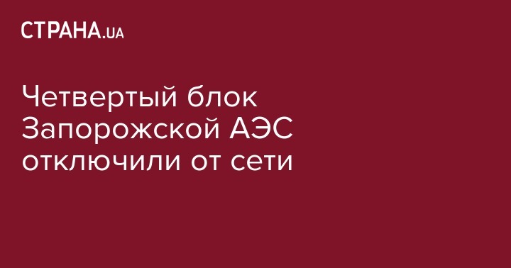 Четвертый блок Запорожской АЭС отключили от сети
