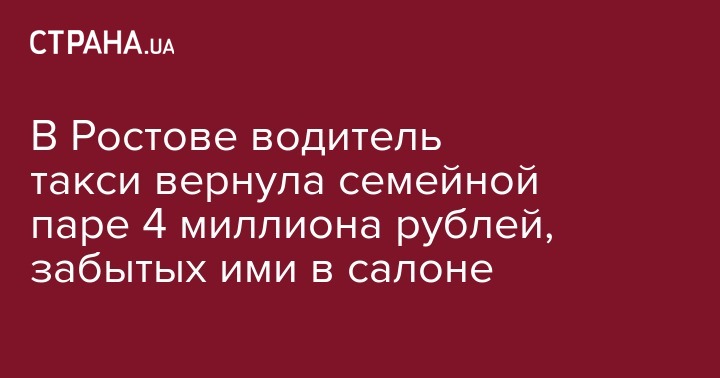 В Ростове водитель такси вернула семейной паре 4 миллиона рублей, забытых ими в салоне