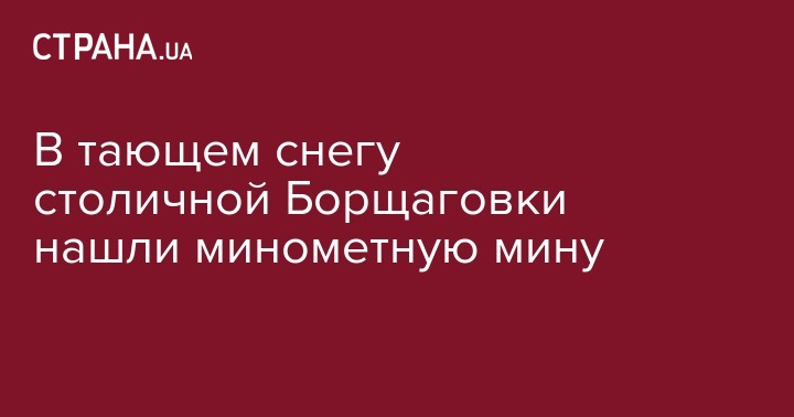 В столичной Борщаговке на газоне, в тающем снегу местные жител обнаружили минометную мину.