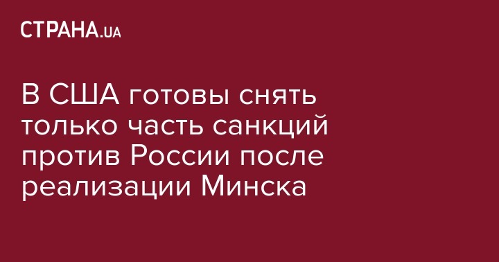 Соединенные Штаты Америки после реализации минских соглашений по Донбассу готовы лишь частично снять санкции против России.