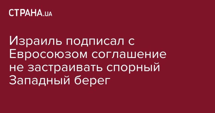 Израиль подписал с Евросоюзом соглашение о сотрудничестве, одним из условий которого является запрет на поддержку и строительство поселений на Западном берегу реки Иордан.