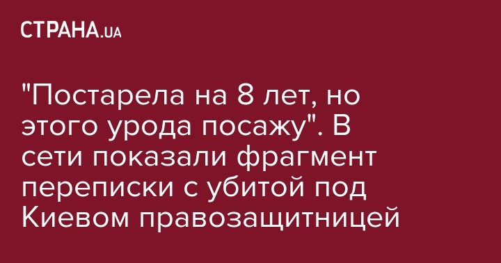 "Постарела на 8 лет, но этого урода посажу". В сети показали фрагмент переписки с убитой под Киевом правозащитницей