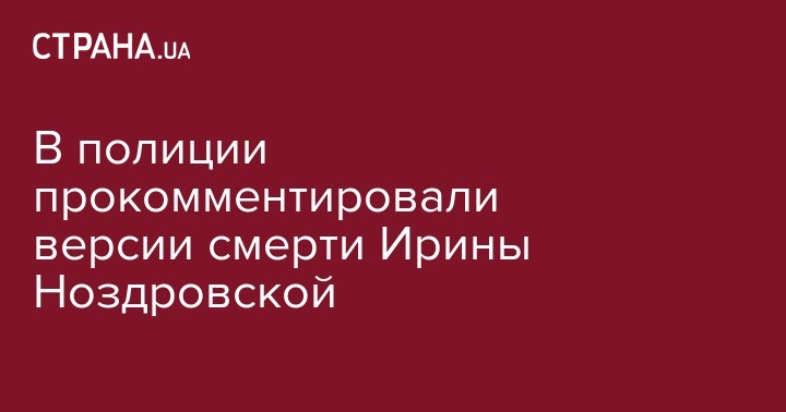 После задержания бывшего жениха правозащитницы Ирины Ноздровской полиция прокомментировала версии в отношении её смерти. Пресс-секретарь полиции Киевской области Николай Жукович заявил, что об этом можно будет говорить после результатов судебно-медицинской экспертизы.