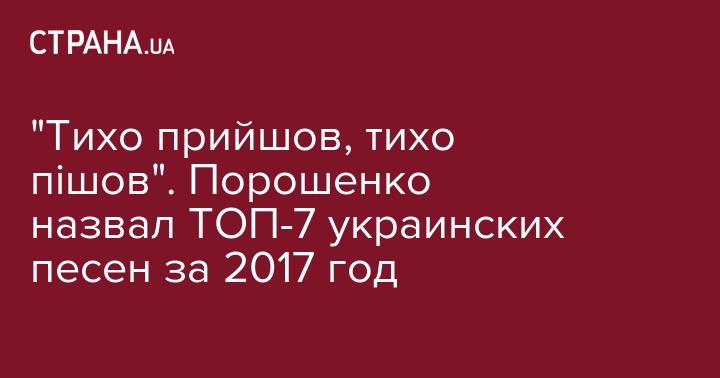 "Тихо прийшов, тихо пішов". Порошенко назвал ТОП-7 украинских песен за 2017 год