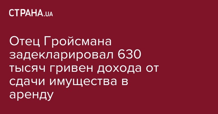 Отец Гройсмана задекларировал 630 тысяч гривен дохода от сдачи имущества в аренду