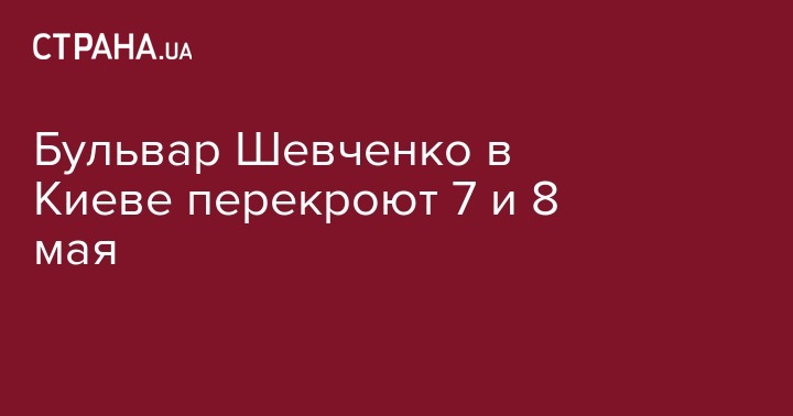 Бульвар Шевченко в Киеве перекроют 7 и 8 мая