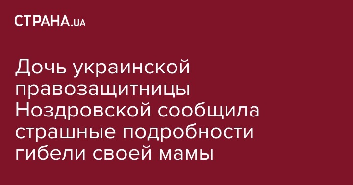 Как сообщала "Страна", ранее дочь правозащитницы Ноздровской сообщила, кого подозревает в смерти матери.