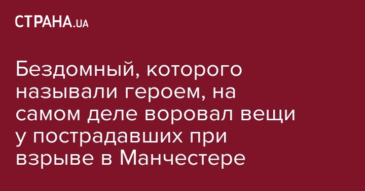 Бездомный, которого называли героем, на самом деле воровал вещи у пострадавших при взрыве в Манчестере