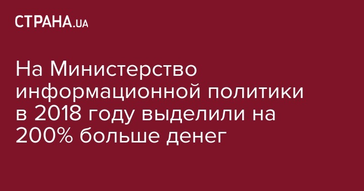 Финансирование Министерства информационной политики в 2018 году выросло на 229,3% до 862,1 млн гривен. Такие данные заложены в госбюджете, передают "Украинские новости".