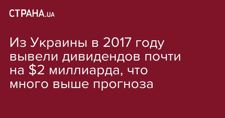 Из Украины в 2017 году вывели дивидендов почти на $2 миллиарда, что много выше прогноза