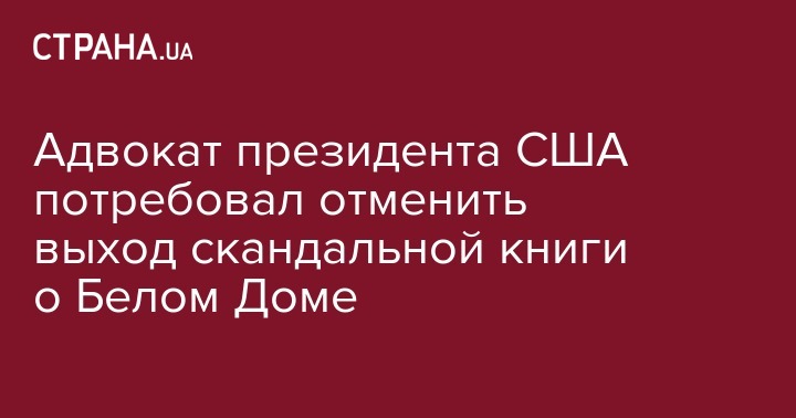 Адвокат президента США Дональда Трампа намерен предотвратить выход книги Майкла Вульфа "Огонь и ярость: в Белом доме Трампа".