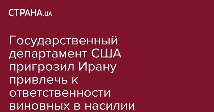 Власти США пригрозили привлечь к ответственности причастных к насилию в Иране. Об этом передает Reuters со ссылкой на заявление Госдепартамента США.