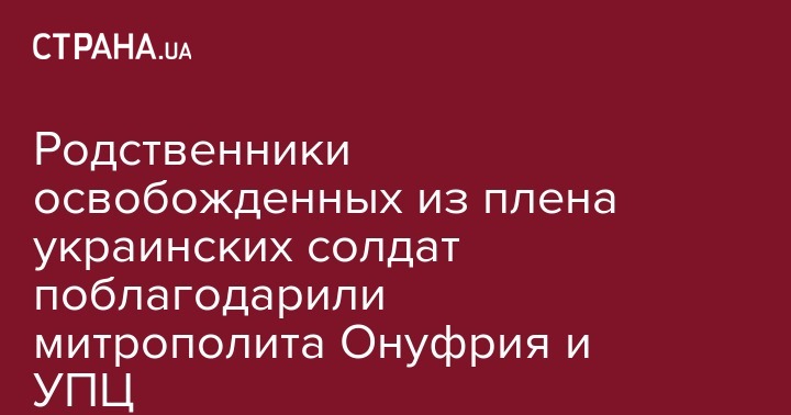 Поддержала просьбу Алексея и жена освобожденного военнослужащего Андрея Бессараба, которая от себя лично и от родственников других солдат выразила митрополиту Онуфрию сердечную признательность за оказанную помощь: "Хочу поблагодарить Вас от всего сердца, от всей души за освобождение ребят. За то, что Вы сделали большую работу, за то, что они сейчас свободны, за то, что мои дети могут обнять отца, за то, что я могу прижаться к своему мужу. Действительно, за это время мы стали все одной семьей, и у нас болит душа за тех матерей, тех жен, самих ребят, которые остались в плену".